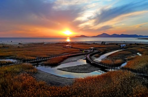 붉은 빛의 노을이 푸른 바다와 하늘을 물들이고 있는 순간을 포착한 김태수의 `다대포 낙조'가 제16회 사하 관광사진 ...